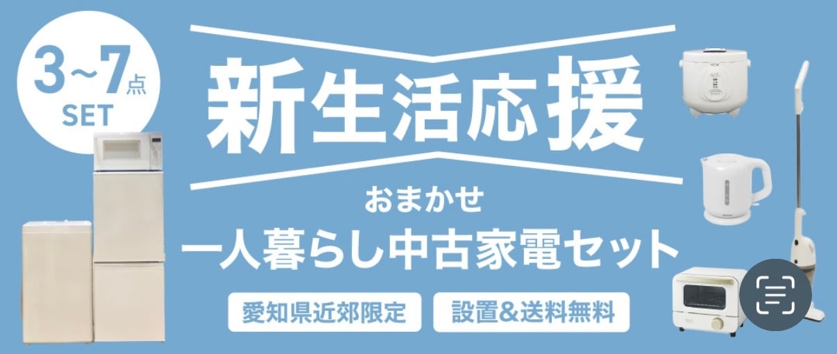 おまかせ一人暮らし中古家電3点セット!冷蔵庫・洗濯機・レンジ春日井市・名古屋市近郊送料無料